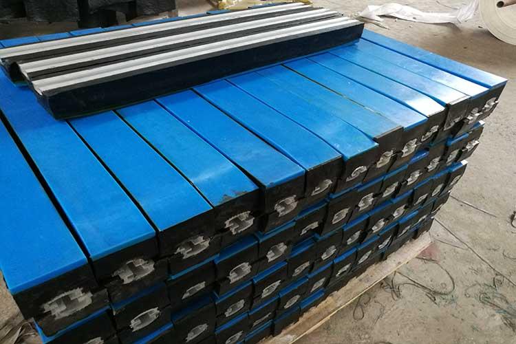 緩沖條的組成:從上到下分別為:高分子聚乙烯耐磨板、緩沖橡膠、金屬件、專用螺栓。