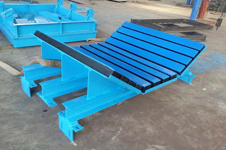 電廠緩沖床主要由緩沖支架和緩沖滑條組成,緩沖滑條主要三部分組成,高分子量聚乙烯板(井下黑色阻燃)、彈性橡膠(阻燃抗靜電)、鋼構(gòu)金屬件。緩沖床也叫皮帶機(jī)緩沖床,主要用于皮帶機(jī)導(dǎo)料槽下方的落料口處,當(dāng)物料下落時(shí),緩沖床利用自身彈性對(duì)物料下落到皮帶上的沖擊力進(jìn)行處理,使沖擊力達(dá)到較小,以保證皮帶機(jī)正常運(yùn)行。除此之外皮帶機(jī)緩沖床的表層緩沖條擁有五百萬(wàn)分子量的高分子聚乙烯板面,該高板于皮帶呈面面接觸,使?jié)櫥赃_(dá)到較高,摩擦系數(shù)降至較低。因此緩沖床對(duì)延長(zhǎng)皮帶機(jī)壽命有著功不可沒的作用。